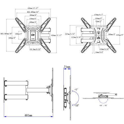 Ottieni la Migliore Esperienza Visiva - Inclinare il TV verso l'alto di 5 gradi e verso il basso di 15 gradi per ridurre l'abbagliamento, girare il TV verso sinistra o verso destra in base a dove ti siedi. Può essere prolungato fino a 355 mm e accorciato fino a 65 mm, Rendi flessibile la tua TV per muoverti.