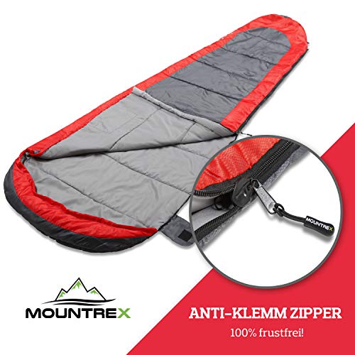 MOUNTREX Sacco a pelo - ultraleggero e compatto (850g) | Sacco a pelo estivo all'aperto - Sacco a pelo mummia (205x75cm) | Small Pack Size | Cuscino da viaggio GRATUITO...