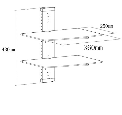 MountRight - Supporto in vetro sospeso per lettore DVD/amplificatore/casse/televisione con schermo a LED/LCD, con 2 ripiani, colore nero
