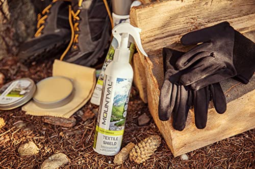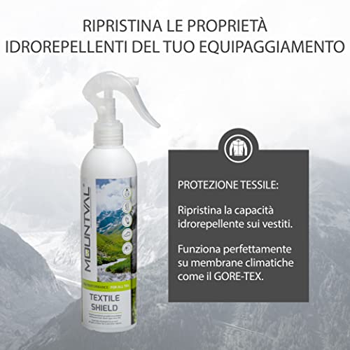 Mountval Textile Shield, Impermeabilizzante a Spruzzo per Climi Umidi e Abbigliamento da Trekking, Odore Gradevole, Funziona con GORE-TEX, Senza Solventi, 300 ml
