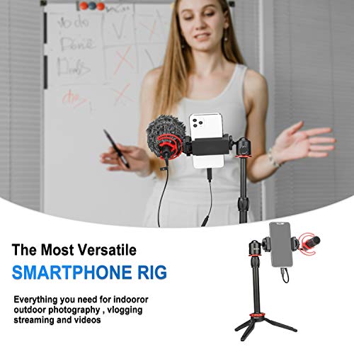 MOURIV VK-T1 Smartphone Video Rig con mini treppiede, tubo di prolunga, video microfono compatibile con iPhone e Android per YouTube, TIKTok, vlogging