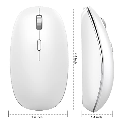 Mouse Bluetooth Ricaricabile, Multi-dispositivo 2,4 G Wireless USB Mouse + Mouse Bluetooth, 1000/1600/2400 DPI, 4 tasti silenziosi, compatibile con PC, laptop, tablet, smartphone (bianco e argento)