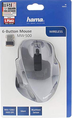Hama Mouse per computer senza fili (mouse wireless per PC, laptop e notebook senza rumori di clic, mouse ottico con forma ergonomica per destrorsi, sensibilità regolabile tra 800/1200/1600 dpi),