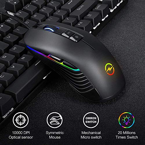 Mouse Gaming PC RGB Mac DPI Game, Mouse da Gioco, Mouse Tasti Pulsanti Programmabili, Mouse Ottico per computer gaming - Horsky