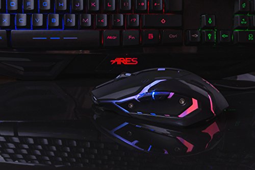 Ares, M1 - Mouse da gaming, mouse ottico professionale, a filo, 800/1200/1600/2400 DPI, con luce intermittente a LED multicolore, per videogiochi su PC e computer portatili