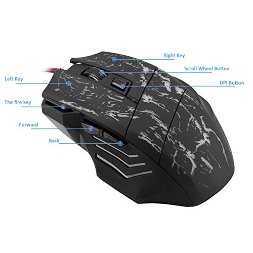 Mouse da Gioco, Mouse da Gioco per E-Sport Mouse Luminoso Cablato Mouse Cablato A 7 Tasti, Mouse Cablato per Pc, Laptop, Computer ECC-Nero