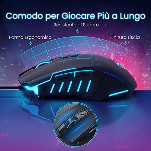 TUTTI i pulsanti del mouse programmabili. Supporta la modifica delle macro, 7 pulsanti del mouse possono essere programmati dal software di installazione che rende il mouse più intelligente e soddisfa più richieste per giochi diversi.