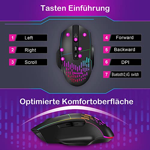 QYFP Mouse da gioco senza fili, mouse ottico ricaricabile con luci a LED a 7 colori, supporta Bluetooth 5.0/3.0/2,4 GHz per computer portatile/desktop/PC/Mac/Windows 7/8/10/11