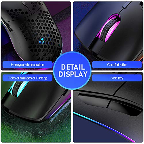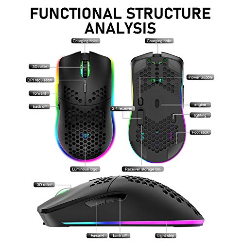 Mouse da gioco wireless leggero, 11 Chroma RGB retroilluminato di 2.4G Mouse ultraleggero ricaricabile wireless a nido d'ape con 3200 DPI, mouse da gioco USB a 7 pulsanti, per giocatori PC, Xbox,PS4
