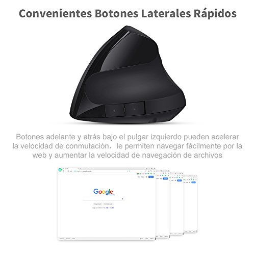 GHB - Mouse Ottico ergonomico verticale wireless da gioco ricaricabile USB da 2,4 GHz per computer PC notebook etc. Colore: nero