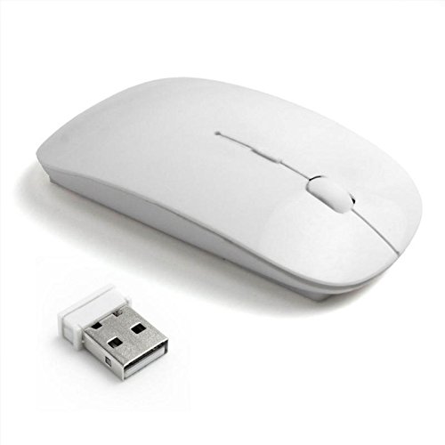 Mini mouse ottico, senza fili, sottile, con ricevitore USB 2.4 G, per laptop/PC Desktop, con sistema operativo XP/Vista/Windows/Apple MacBook bianco White