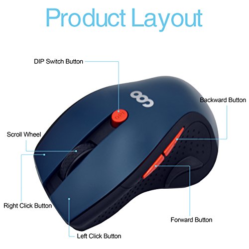 COO Mouse ottico wireless da 2,4 GHz, con 6 pulsanti, nano ricevitore blu blu