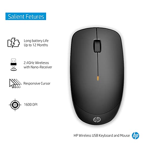 HP Mouse ottico wireless 235 da 1600 DPI e tastiera con layout completo, con maggiore durata della batteria