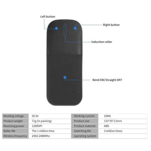 Mouse pieghevole wireless 2.4G, mouse Bluetooth silenzioso con ricevitore USB, 1200DPI per computer ottico BT Mouse compatibile per computer portatile Microsoft PC (nero)