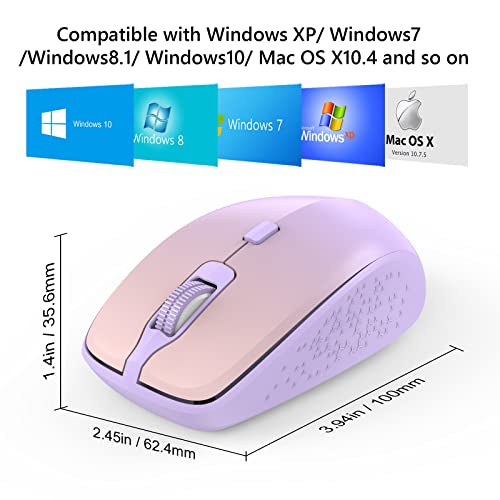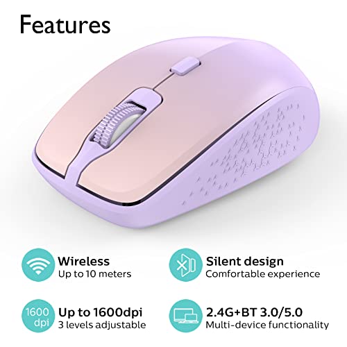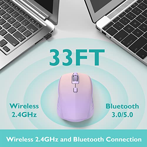 Mouse senza fili Bluetooth, mouse wireless Bluetooth per laptop (BT 5.0/3.0+2.4G), mouse del computer portatile senza fili mouse silenzioso mouse USB per iPad MacBook Tablet Notebook PC Phone (viola)