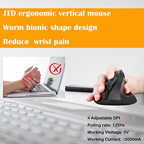 JTD Mouse Senza Fili del Mouse Verticale ergonomico, Ricaricabile 2.4G RF e connessione Bluetooth 4.0 Wireless Optical Mouse 800/1200/1600/2400 DPI per lancette piccole (Oro Nero)