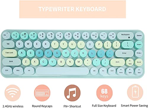 [Stile retrò e carino]: la combinazione di tastiera e mouse wireless ha un design dall'aspetto di una macchina da scrivere retrò con un design del copritastiera Dot, con uno stile carino