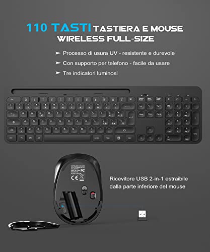 Mouse e Tastiera Wireless, TedGem 2.4G Set Tastiera e Mouse Wireless per PC/Laptop/Computer/Desktop (Black)