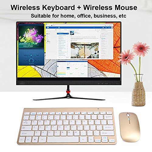 Set di mouse per tastiera wireless Mini mute ultrasottile per computer per ufficio domestico Mouse per tastiera wireless combinato per casa, ufficio, affari 1200 DPI(Oro)
