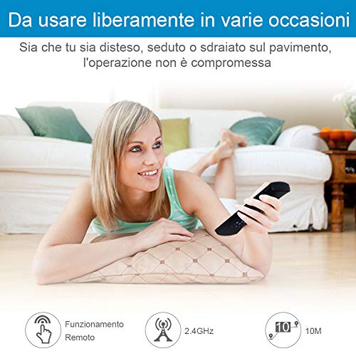 【Design confortevole】Il design ergonomico dell'air mouse è stato studiato per avere una salda impugnatura sia con una mano che con due. È un prodotto potente che offre facilità d'uso e precisione di puntamento. L'attrezzatura fatta di materiali speciali garantisce la massima praticità operativa, massime prestazioni e comfort.