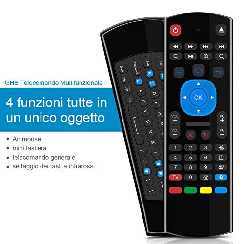 GHB Air Mouse Telecomando Android 4 in 1 a Raggi Infrarossi 3-Gyro + 3-Gsensor 2,4G per Android Smart TV Box G Box HTPC Mini PC Windows iOS