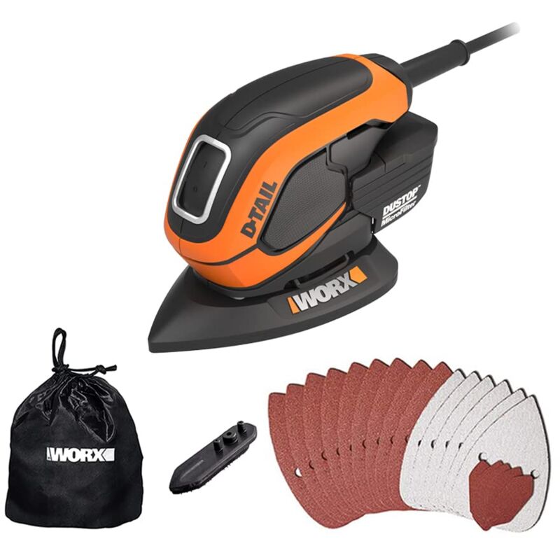 Design ergonomico per maggiore comfort e controllo Meno vibrazioni per comodo Dust Stop microfiltro per un lavoro più pulito Fissaggio con morsetti a sgancio rapido Funzioni e caratteristiche * Colore: nero * Sostituzione del foglio abrasivo in velcro: responsabilità * Rotazione regolazione elettronica: no * Filtro: sì * Connettore aspirazione della polvere: no * sacchetto raccoglipolvere integrati: no * Polvere contenitore/-Sacchetto: sì * luce di lavoro: no * Impugnatura supplementare: no * Soft Grip: sì * Caratteristiche: Finger - Impianto come prolunga consente di lavorare in aree difficili da raggiungere. Specifiche tecniche * Potenza: 65 W * Numero di vibrazione: 11000/min * circuito oscillante: 1,5 mm * Tensione di alimentazione: 230 V Dimensioni * Peso: 0,7 kg Contenuto della confezione * accessori: * 9 - fogli di carta vetrata con velcro, 6 carta vetrata per la rimozione di residui di vernice * 6 Finger - Carta vetrata, 1 piastra di levigatura Finger, 1 sacco Fang Box, 1