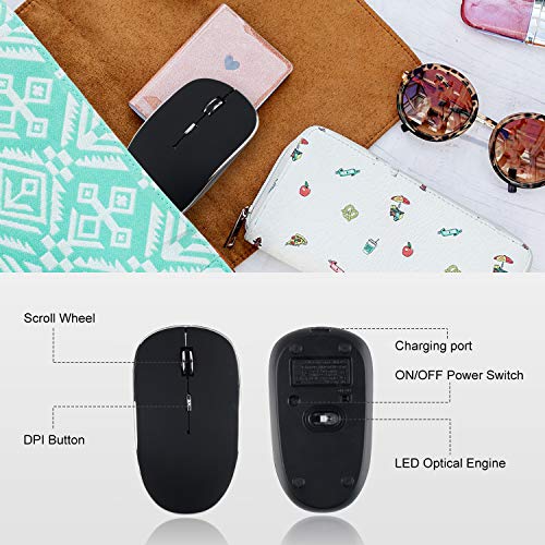 Mouse Wireless Bluetooth Ricaricabile, Mouse Senza Fili Ottico Piccolo Mini Portatile con Mouse USB per per Notebook, PC, Laptop, MacBook,1800 DPI 3 Livelli Regolabili(Nero-placcato)
