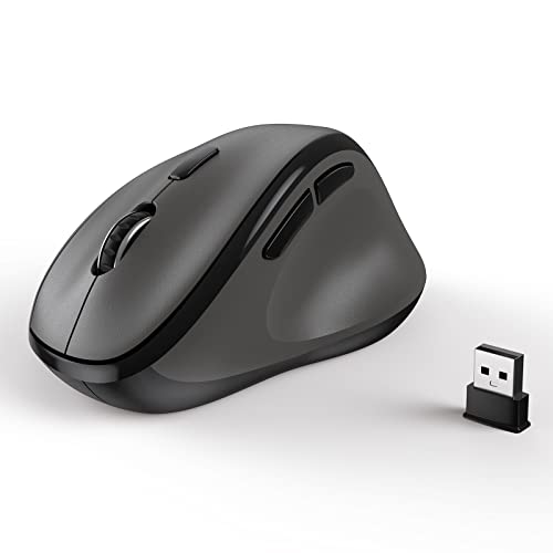 Mouse wireless ergonomico Micropack con chiavetta USB per PC, laptop e desktop, mouse verticale con clic silenziosi, batteria a lunga durata, fino a 1600 DPI e 1 batteria AA, Grigio
