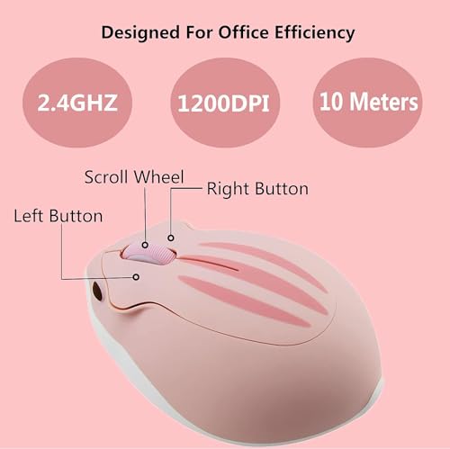 Mouse wireless a forma di criceto ottico, 1200 DPI, con cancellazione del rumore, ultra portatile, 2,4 GHz, con ricevitore USB Unifying, per PC / Mac / Laptop Kids Girl Gift(rosa)
