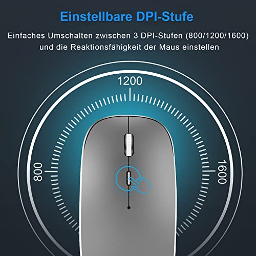 Mouse wireless per laptop, 2,4 GHz, mouse wireless con USB/USB-C, due ricevitori per tablet/desktop/PC, silenzioso, compatibile con iPad, MacBook Air/Pro, Mac, Chromebook, Windows, computer (grigio)
