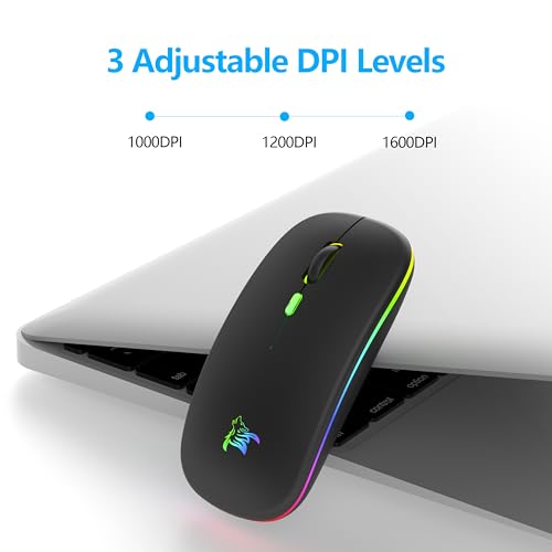 TQQ Mouse wireless ricaricabile, mouse retroilluminato a 7 colori con mini ricevitore USB da 2,4 GHz, mouse gaming, Compatibile con laptop, PC, Mac, Computer, Chromebook, Notebook
