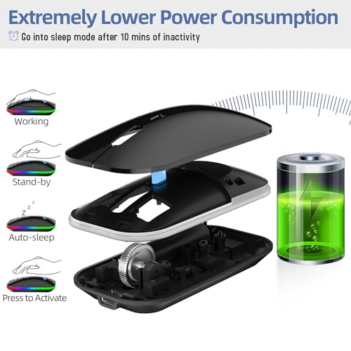 【Silent Buttons & Comfortable Feel】Il mouse silenzioso con design classico fornisce il massimo supporto e comfort per la tua mano. The mute button reduces noise by 90%, make it an ideal wireless mouse for offices, conference rooms, coffee shops, libraries, bedrooms, ecc., helping you focus on work or study without disturbing others around you. Ultra-thin, ergonomiic design, lightweight and convenient, easy to carry or travel.