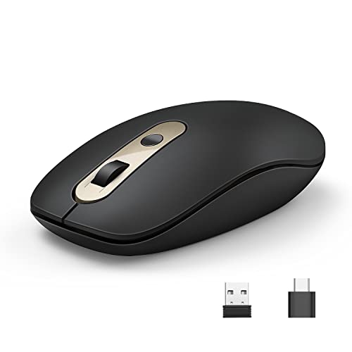 Mouse wireless USB C + USB A, mouse wireless 2.4 GHz con ricevitore USB/Type-C Dual Modus, DPI regolabile 2400/2000/1500/1000 silenzioso mouse wireless per tablet, laptop, PC, Windows, MAC OS (nero e