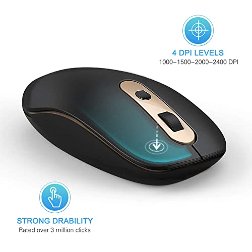 Clic silenzioso e livelli DPI regolabili: il mouse silenzioso USB C con clic silenzioso è perfetto per uffici, biblioteche e altri luoghi pubblici in cui non vuoi disturbare gli altri o interrompere la concentrazione. Quattro livelli di DPI: 2400/2000/1500/1000, che è possibile regolare secondo necessità.