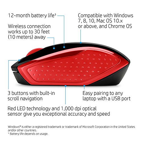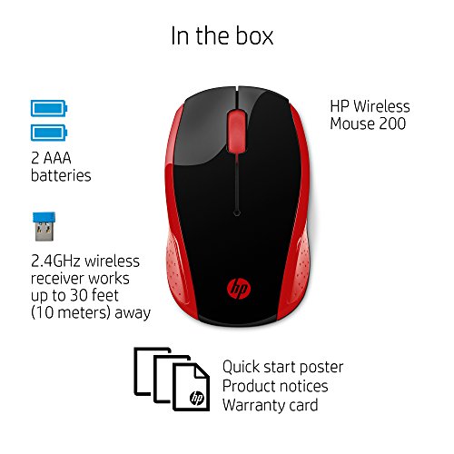 HP - PC 200 Mouse Wireless, Tecnologia LED Rosso, Laser fino a 1000 DPI, 3 Pulsanti, Rotella Scorrimento, Ricevitore USB Wireless 2.4 GHz Incluso, Design Pratico e Confortevole, Ambidestro, Rosso
