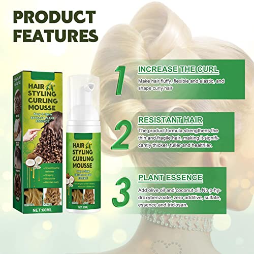 Mousse per acconciature ricci, mousse per acconciature per capelli ricci, 60 ml Unisex con ingrediente naturale Schiuma modellante per acconciature ricci a lunga durata Controllo 'effetto