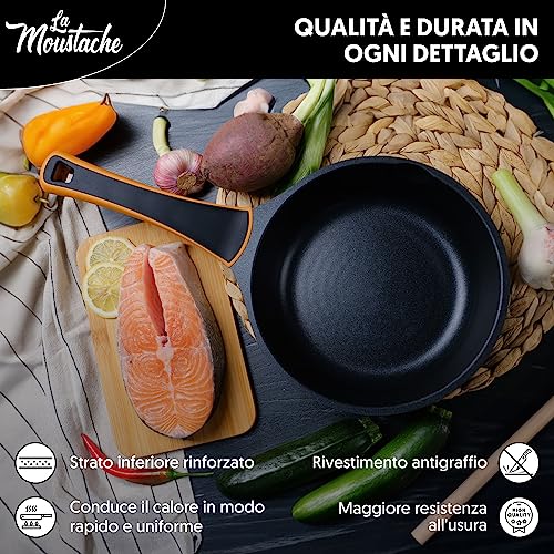 La Moustache - Set di 3 Padelle Antiaderenti in Alluminio e Titanio Ø 20/24/28 cm Padelle Universali Adatto a Induzione, Gas, Piano Cottura Elettrico e Vitroceramica, Manico Antiscottatura (Ducane)