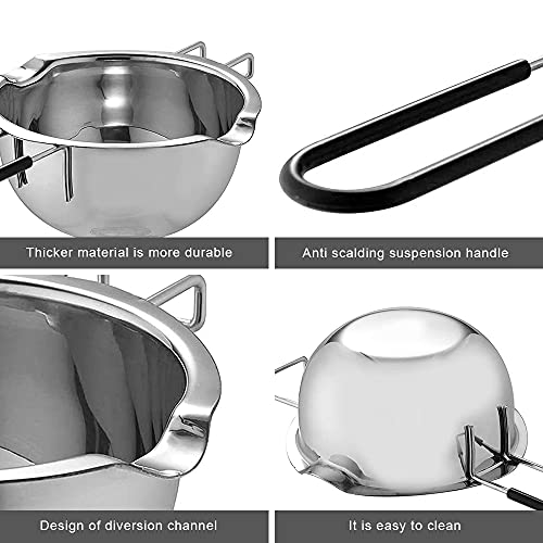 Mousyee Bastardella Bagnomaria, 2 Pezzi Pentolino Bagnomaria, Pentolino Acciaio Inox, Sciogli Cioccolato, 400 Ml Bagnomaria con Manico Resistente al Calore per Fondere Cioccolato Caramelle e Candele