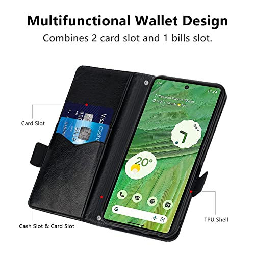 MAMA MOUTH Cover Google Pixel 7, Custodia Flip Pelle Portafoglio, Magnetica Libro Slot Schede Pixel 7 Cover, Slim Silicone TPU Bumper Wallet con Supporto Antiurto Case Per Pixel 7 Nero