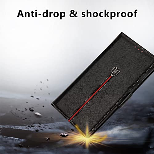 【Multifunzione e sicurezza】 La cover a portafoglio in pelle flip è dotata di 2 slot per carte e una tasca laterale per contanti aggiuntivi o piccole carte. Con strati di blocco Rfid e chiusura magnetica, può proteggere le tue carte di credito e d'identità da scansioni non autorizzate e furti.