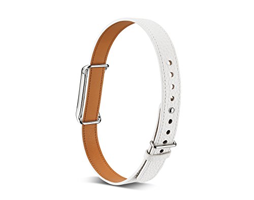 Elegante finitura cromata su uno splendido cinturino in pelle bianca