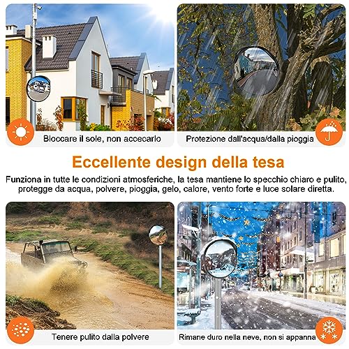 Specchio convesso: lo specchio grandangolare è facile da installare. Si monta facilmente con i supporti in dotazione. Si prega di fare riferimento alle istruzioni di installazione per specchi convessi (lingua italiana non garantita).