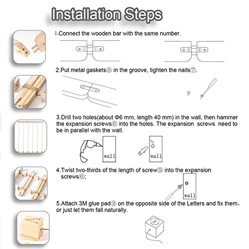 Facile Da Assemblare-- collega le barre di legno con lo stesso numero e utilizza l'hardware incluso per il montaggio a parete. 6 blocchi di legno chiamati "I LOVE U" rendono questo telaio unico e speciale.