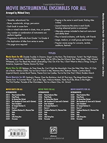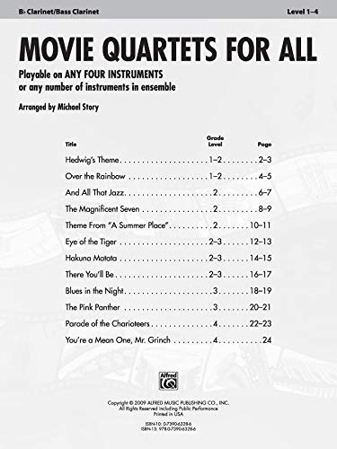 Movie Quartets for All: B-flat Clarinet, Bass Clarinet: Playable on Any Four Instruments or Any Number of Instruments in Ensemble