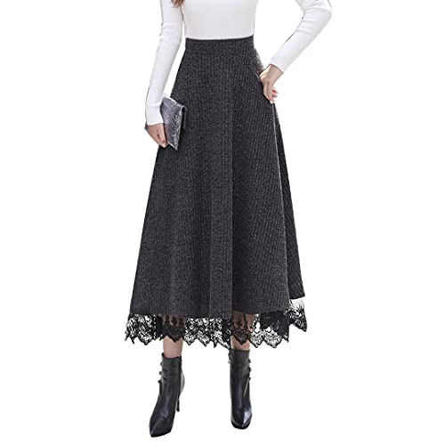 Moviendress Donna Vita Alta Gonna Vita Elastica Eleganti Vintage Scozzese Pieghe Invernali Lana Lunghe Gonne (XS, Grigio 2)