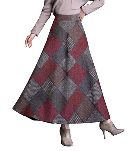 Moviendress Gonna a Vita Alta Donna Lunga Scozzese Lana Invernali Vintage Caldo Quadri Eleganti Pieghe Gonna Lunghe (S, Rosso)