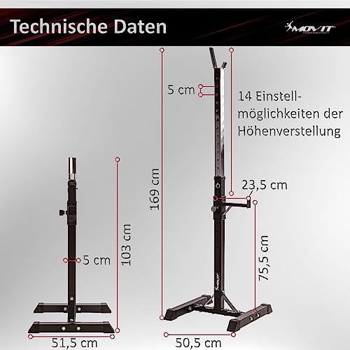 MOVIT Supporto per Bilanciere - Coppia di 2 Rack, Altezza Regolabile, Nero o Bianco - Rastrelliere, Porta Bilanciere, Pesi, Palestra Casa, Squat