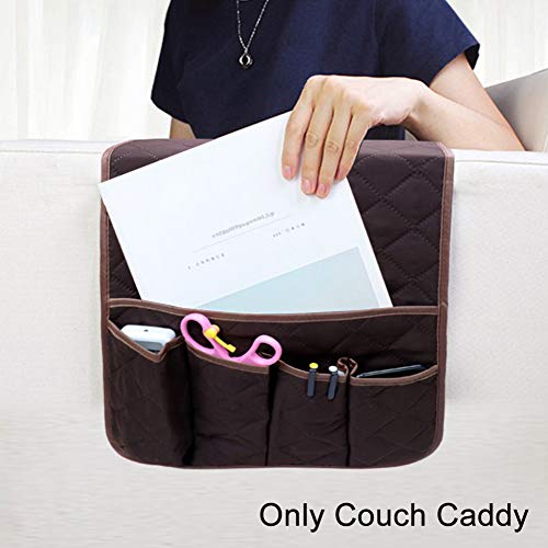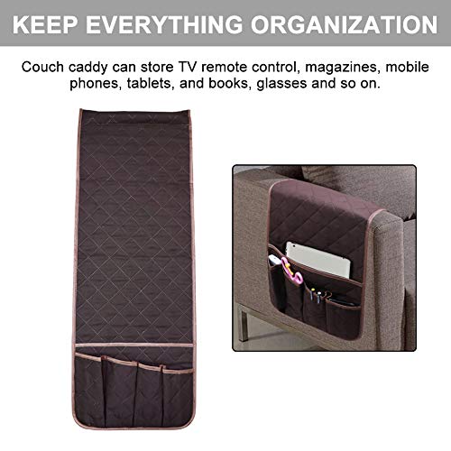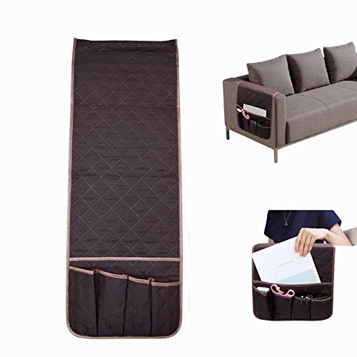MOVKZACV Organizer per bracciolo del divano, antiscivolo, con 5 tasche, per bracciolo e poltrona, con porta telecomando per divano reclinabile (caffè)