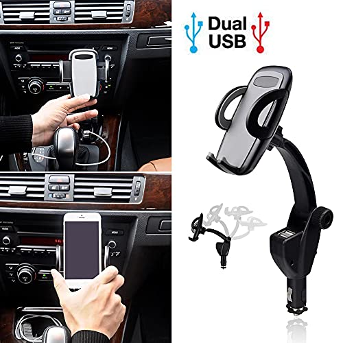 MOVKZACV - Supporto per telefono da auto, 2 in 1 doppio caricatore USB da auto con supporto regolabile, 360 gradi per accendisigari universale (nero)