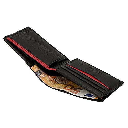Presenta sei fessure per le carte di credito, uno scompartimento per la carta di identità e due spazi per i banconote